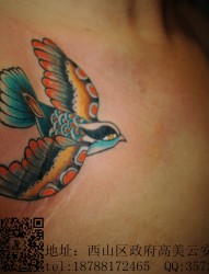 肩部彩色燕子纹身