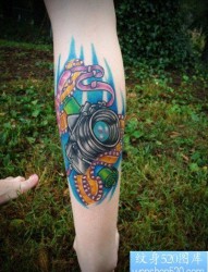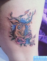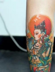 纹身馆推荐一款腿部宗教彩色象神纹身图案