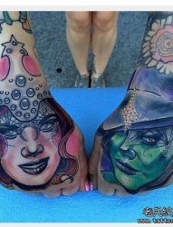 手臂彩色女郎纹身图案