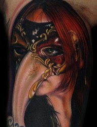一款彩色肩部面具纹身图案