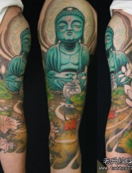 一款手臂彩色佛纹身图案