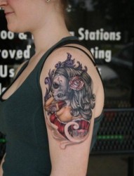 手臂彩色大嘴怪女郎纹身图案