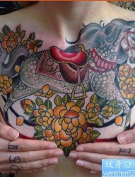 胸口彩色木马纹身图案