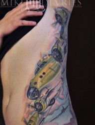 侧腰彩色飞机纹身图案