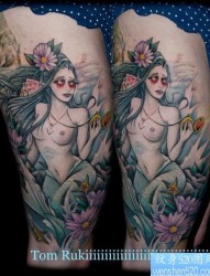 腿部彩色人物女郎纹身图案