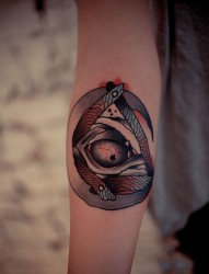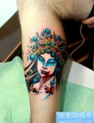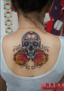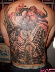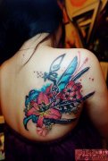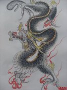 一张彩色半甲披肩龙菊花纹身图片纹身图案