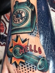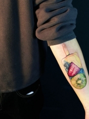 手臂上传统彩色纹身花体英文字卡通纹身小图案