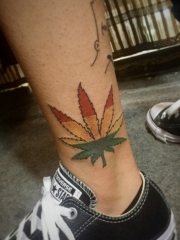 美女手臂上彩色狐狸纹身小花朵纹身图片