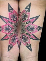 手臂上彩色几何点刺纹身曼陀罗图案纹身
