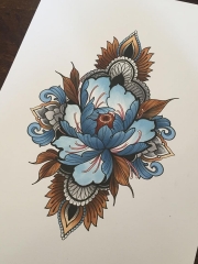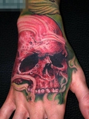 手臂时尚流行的欧美彩色骷髅纹身图案