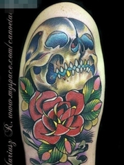 手臂经典帅气的欧美彩色骷髅纹身图案