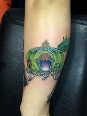 手臂上彩色的卡比兽纹身卡通纹身小图片