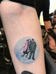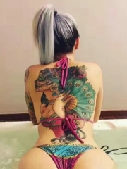 彩色的人物肖像纹身动物和玫瑰花纹身图案