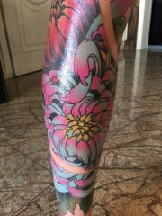 小腿上海水和恐龙耀西游戏人物纹身图片