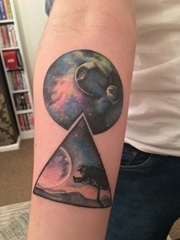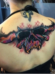 大腿new school骷髅蝴蝶鹿女郎彩色纹身图案