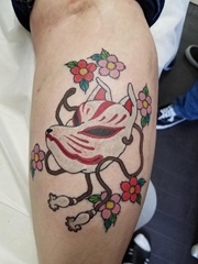 漂亮的日式面具纹身彩色狐狸纹身图片