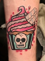 手臂上彩色的骷髅头纸杯蛋糕纹身图片