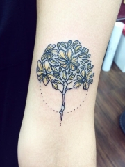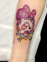 小臂头戴蝴蝶结的彩色小骷髅纹身图案