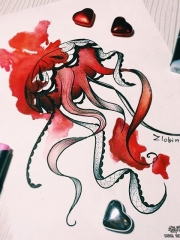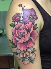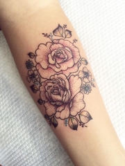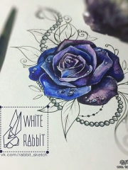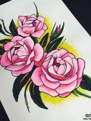 欧美写实逼真玫瑰彩色纹身图案手稿
