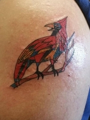 小腿上帅气的彩色猫头鹰纹身动物纹身图片