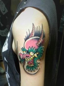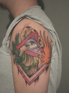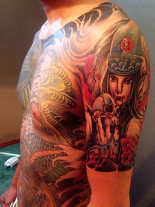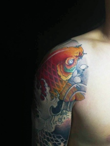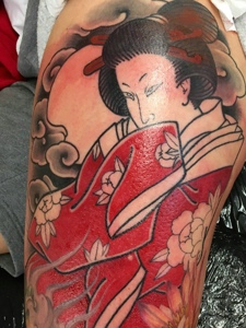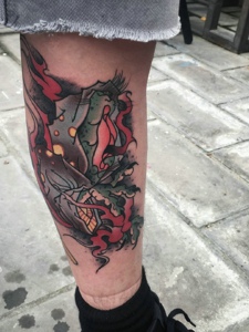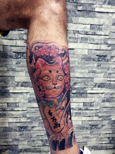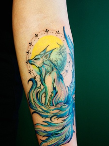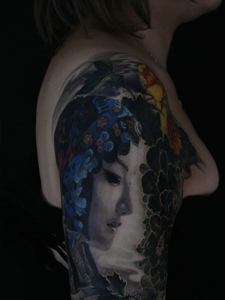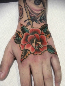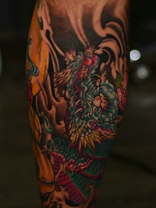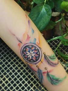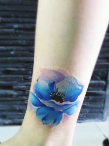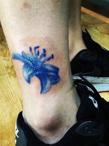 裸脚外侧盛开着一朵蓝色花朵纹身