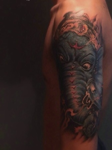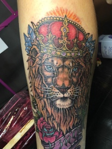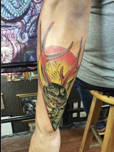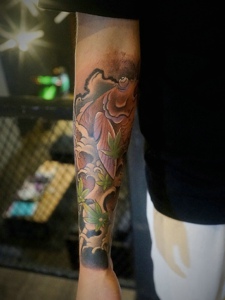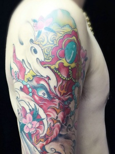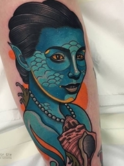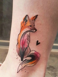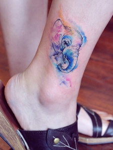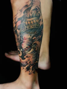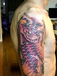 活泼亮丽的腿部彩色鲤鱼纹身图案