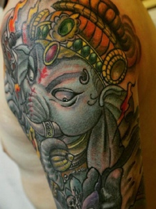 清晰明了的大臂彩色大象神纹身图案