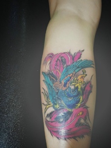 手臂骄傲自我的彩色凤凰纹身图案
