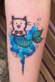 手臂上的超小清新彩色纹身图片9张