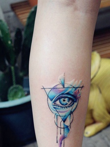 小腿外侧精致的水彩上帝之眼纹身图案