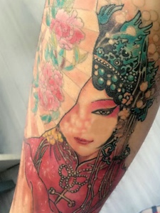 最受欢迎的一款手臂传统花旦纹身图案