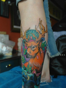 包小腿七彩小鹿纹身图案精神抖爽