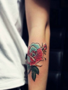 清晰靓丽的手臂彩色花朵纹身图案