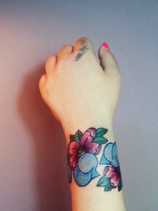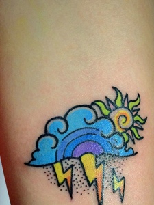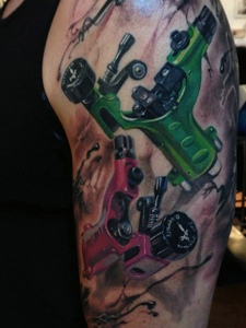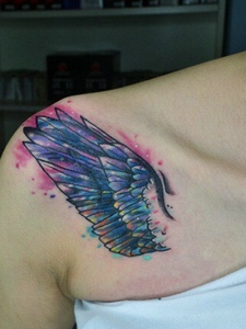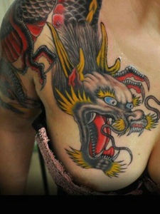 男士后背颜色逼人的彩色骷髅纹身刺青