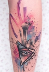 一组水彩泼墨线条风格的彩色纹身图案欣赏
