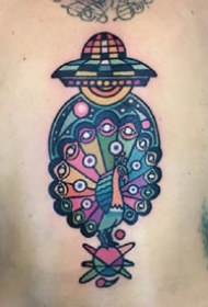 创意的动物轮廓和幻彩色星空风景等元素的纹身图案