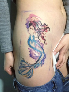侧腰部的漂亮美人鱼纹身美美的