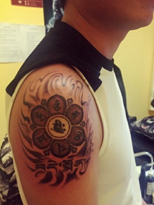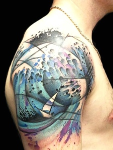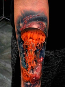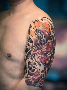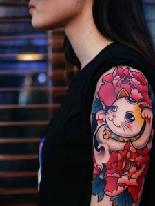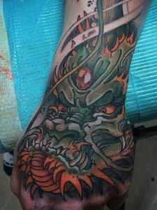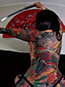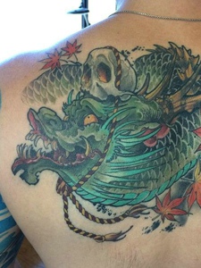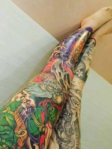女士满身洒脱着霸气彩色邪龙纹身图片
