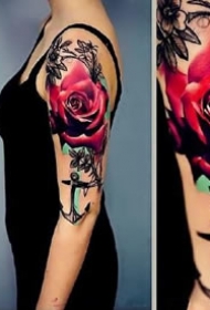 绚丽多姿的鲜艳玫瑰花纹身图案作品9张