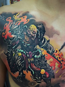 胸前个性创意的齐天大圣纹身图案