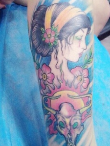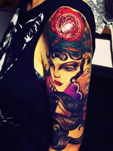 经典艳丽的手臂花旦纹身图片