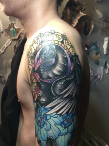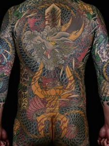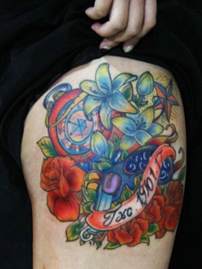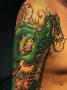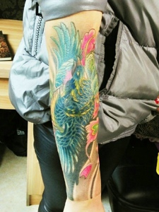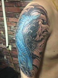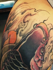 莲花与鲤鱼结合的彩色半甲纹身图片