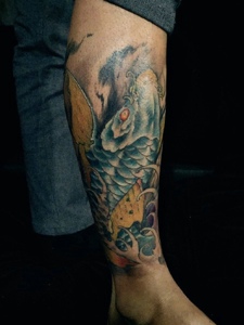 包小腿彩色鲤鱼纹身图片耀眼光芒