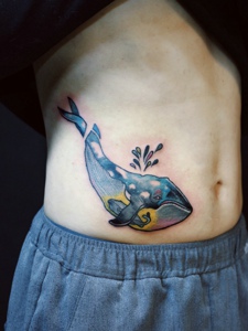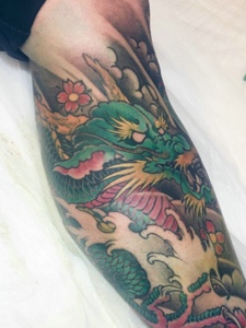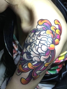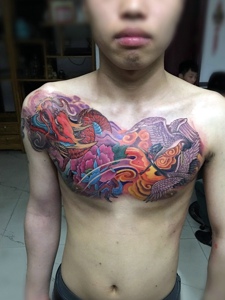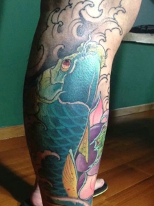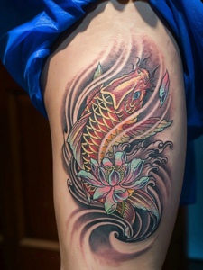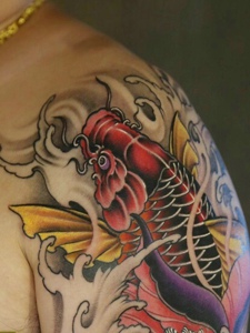 满背彩色大鲤鱼纹身图案事业蒸蒸日上