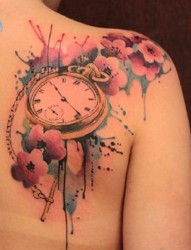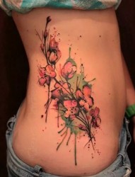 彩色泼墨花儿纹身