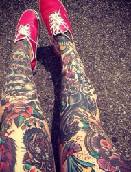 炫酷的彩色花腿纹身