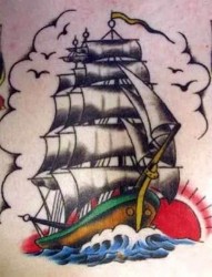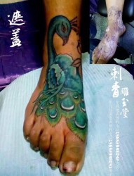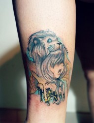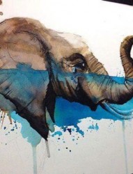 男子背部兔子纹身图案_红蓝白彩色纹身兔子图片