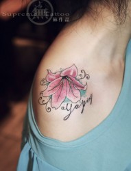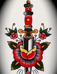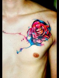 肋骨彩色骷髅头_红色花朵_骨头纹身图案