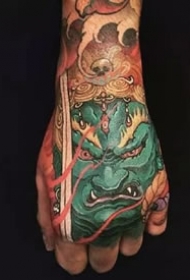 手背纹身--一组霸气满手背彩色纹身图案作品