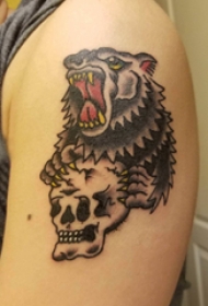 大臂纹身图 男生大臂上骷髅和熊纹身图片